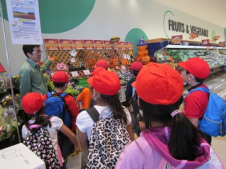 スーパーカスミ店では、陳列の工夫や、野菜を取り扱う時の工夫などを教えていただきました。また,