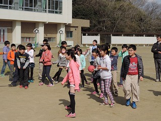 卒業を前に、4年生が、6年生にドッジボールで勝負を挑みました。