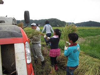 <みんなで刈り取ったると、楽しいね!!貴重な体験をすることができました!!>