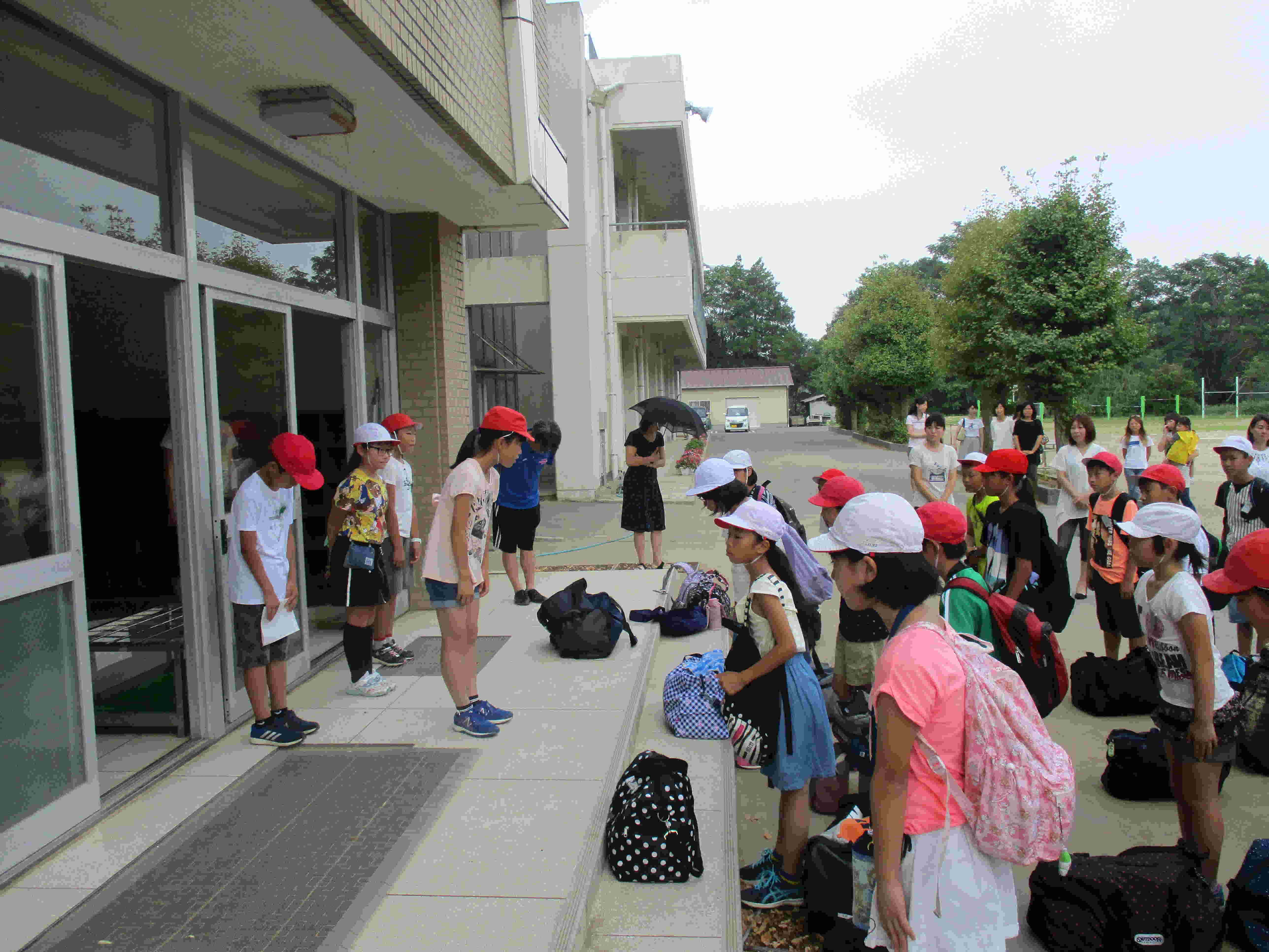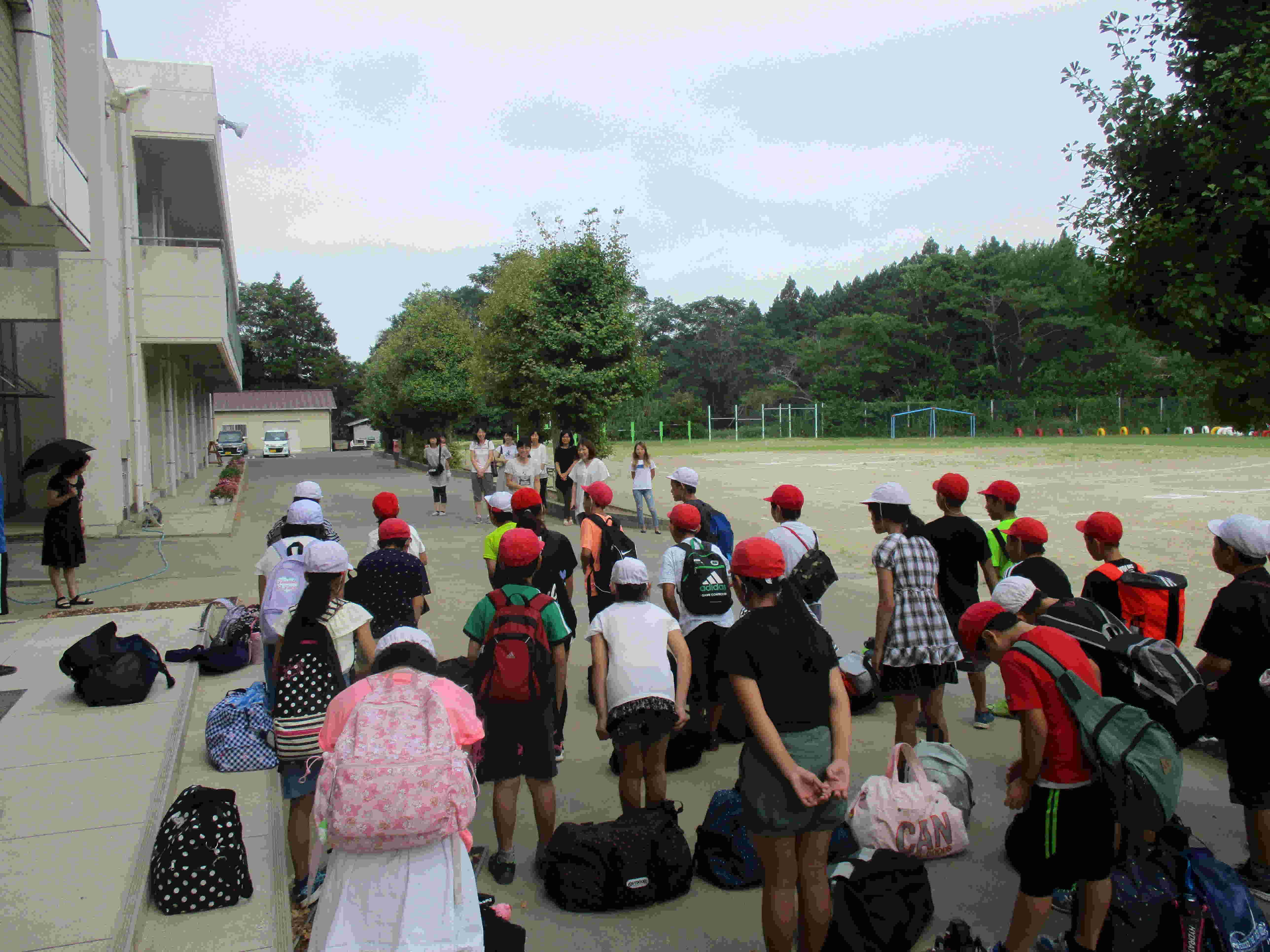 | ・担任の先生の注意を聞いています。暑いので、熱中症にならないようにこまめに水分補給をしましょう。 | |