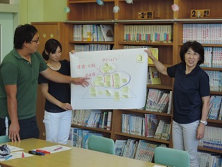 さて、本日子どもたちからたくさんの質問を受けました。「先生って夏休み中何しているの?」そこで、今回は子どもたちではなく、登校日の職員の様子をお知らせします。写真は、登校日に行った研修の様子です。テーマは「こんな豊栄小にしたい」でした。
