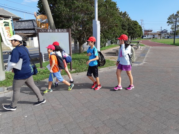 ・2日目のウォークラリーの写真です。班長を先頭に交通安全に注意して、ラリーを楽しんでいます。 |